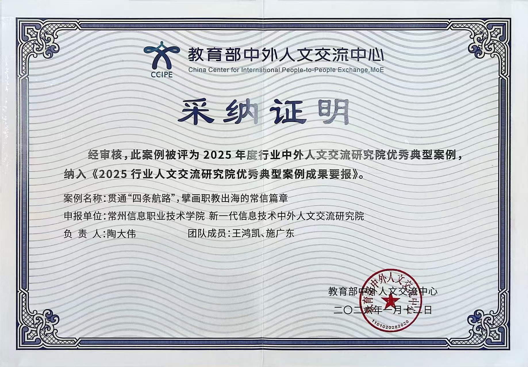 1月15日,由教育部中外人文交流中心举办、广西师范大学承办的2025年行业中外人文交流研究院建设经验交流暨工作推进会在广西桂林成功举办。我校撰写的《贯通“四条航路”,擘画职教出海的常信篇章》被评为2025年度行业中外人文交流研究院优秀典型案例,并被纳入典型案例成果要报。