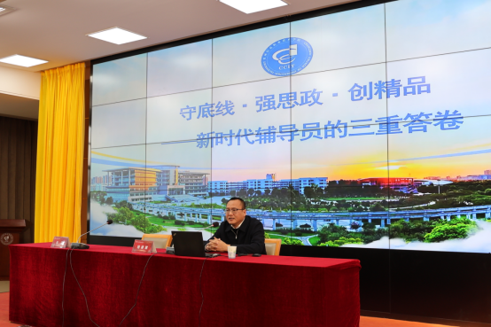 党委委员、宣传部部长骆建建以“守底线・强思政・创精品——新时代辅导员的三重答卷”为主题,结合学校思政工作实践与特色成果展开分享。他详细解读了“守牢意识形态安全底线、热爱学生思想政治工作、打造思政工作精品项目”的实践路径,带大家明确“底线守护者、思政热爱者、精品创造者”的三重角色定位。他提出,辅导员作为学生日常思想政治教育的组织者与实施者,要主动研究思政工作内涵、提升专业能力,将意识形态教育融入学情研判、舆情应对全过程,做到“熟读文件、学懂弄通、引导入心”;要践行“8小时专心致志,1万小时定律”的敬业精神,主动借鉴“头雁领航、雏雁争鸣、群雁齐飞”的团队成长模式,在互助帮带中提升专业能力;要结合心理健康教育、网络思政、职业规划等工作实际,瞄准教育部、教育厅等各级思政项目,以“上级文件、他山之石、核心数据、往年做法、几类文本”的“20字箴言”和“九合一”创新特色,打造有温度、有深度的思政精品项目,争做“常信大机器上最坚固的螺丝钉”。