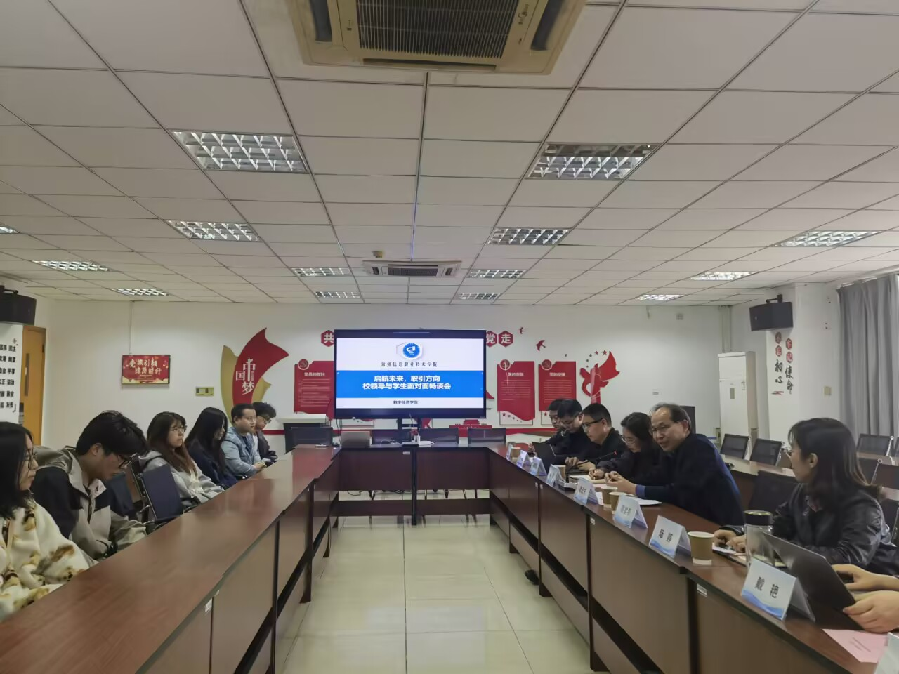 为切实破解学生职业发展困惑,搭建师生沟通桥梁,11月12日下午,数字经济学院在SA301举办了“启航未来,职引方向”校领导与学生面对面畅谈会。校党委副书记费云生、校企合作处副处长周建美、数字经济学院党政领导班子成员、优秀毕业生代表王法佳、辅导员及大三学生代表参加了此次会议,畅谈会由高成瑨主持。