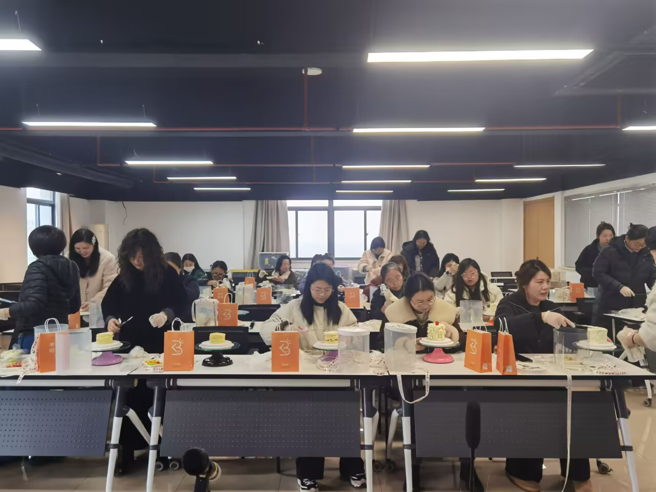 本次活动以“烘焙传情,致敬女神”为宗旨,兼顾趣味性与体验感,特意邀请专业烘焙老师现场授课指导,为老师们提供全方位的技术支持。活动伊始,烘焙老师围绕点心制作的核心步骤,进行了细致的讲解和示范,耐心解答大家提出的各类疑问。随后,参与人员分组行动,纷纷化身“烘焙达人”,挤奶油、搭配果饰,相互协助、相互交流,现场欢声笑语不断。无论是零基础的烘焙小白,还是有一定经验的美食爱好者,都全情投入,在指尖的操作中感受烘焙的乐趣,将心意与祝福融入每一份作品之中。