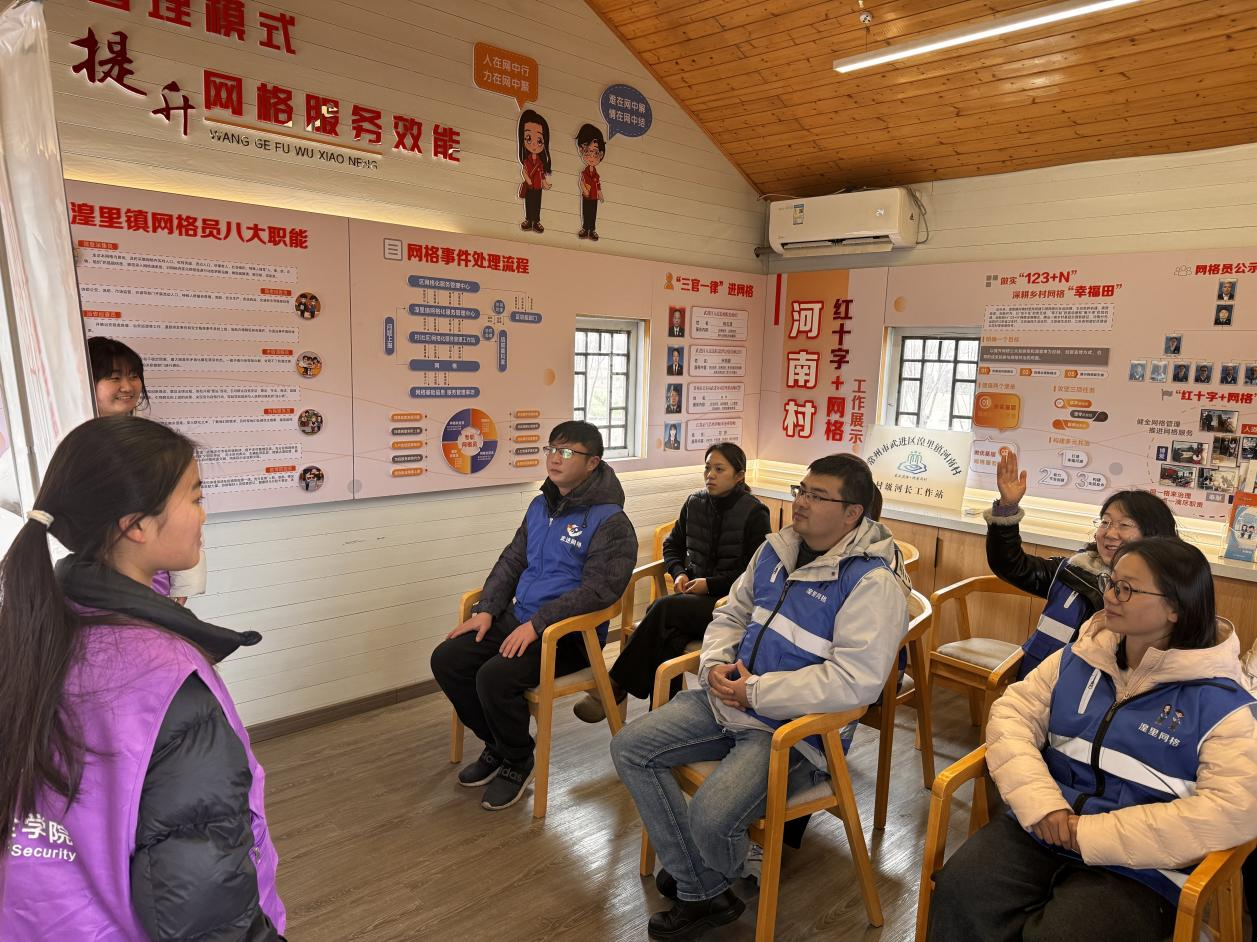 三月春风暖,志愿正当时。为进一步弘扬雷锋精神和志愿服务精神,发挥专业优势服务基层社会治理,近日,网络空间安全学院分团委组织“清朗”志愿服务团的青年志愿者们走进湟里镇河南村网格驿站,为坚守在一线的网格员们带来了一堂生动实用的“国家安全与防诈骗”专题课程,并围绕日常工作中遇到的信息安全难题进行了深入交流。