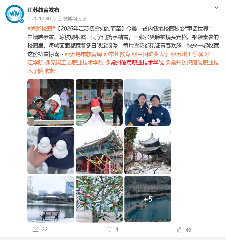 光影校园 2026年江苏初雪如约而至