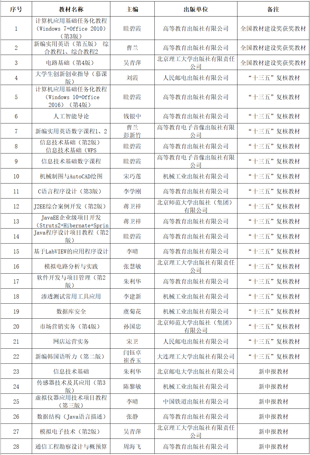近日,教育部发布了《关于拟入选首批“十四五”职业教育国家规划教材名单的公示》。公示显示共有7262种教材拟入选首批“十四五”职业教育国家规划教材。我校3部首届全国教材建设奖职业教育类获奖教材、19部“十三五”职业教育国家规划教材及6部新申报教材入选,入选教材总量居江苏省高职院校第4位。(文/吴睿 审/朱敏、吴昊、张煜)