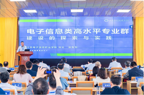 江苏电子信息职业学院校长张有东作《电子信息类高水平专业群建设的探索与实践》专题报告。