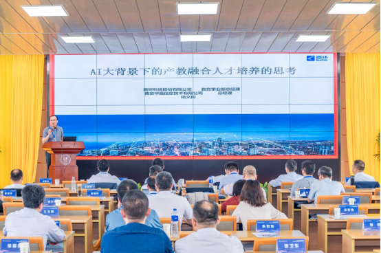 嘉环科技股份有限公司总经理杨文彬作《AI大背景下的产教融合人才培养思考》专题报告。