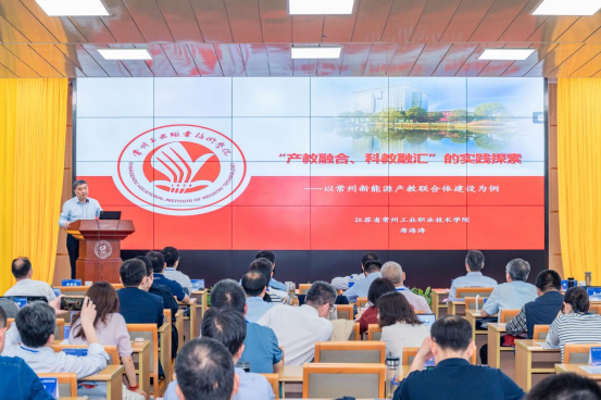 常州工业职业技术学院党委书记席海涛作《“产教融合、科教融汇”的实践探索——以常州新能源产教联合体建设为例》专题报告。