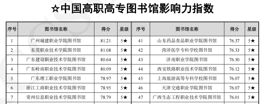 近日,《数智时代中国图书馆影响力指数报告(2025版)》(下称《报告》)正式发布,我校图书馆获评五星级图书馆,在“江苏省高职高专图书馆影响力指数”继续蝉联第1名,在“中国高职高专图书馆影响力指数”中位列全国第7名。
