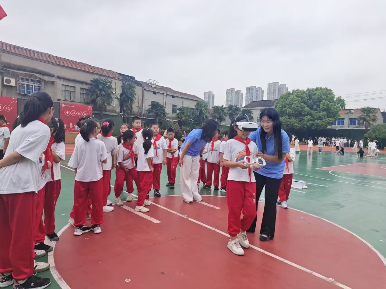 志愿者以“现实为画布,虚拟为颜料”生动比喻AR技术的核心,并借助AR眼镜进行演示。通过空间定位技术,课本中的恐龙模型“站立”在操场上,太阳系天体按比例悬浮眼前。专业原理与沉浸式体验相结合,让深奥的科技知识变得通俗易懂。