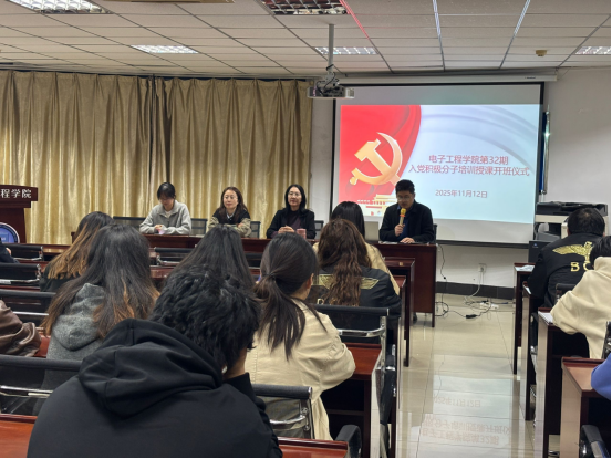 11月12日晚,电子工程学院第三十二期分党校开班仪式在实训楼B301举行。电子工程学院党总支副书记张晓红、学生党支部委员和分党校30名入党积极分子参加了开班典礼,开班典礼由学生党支部宣传委员王洛超主持。