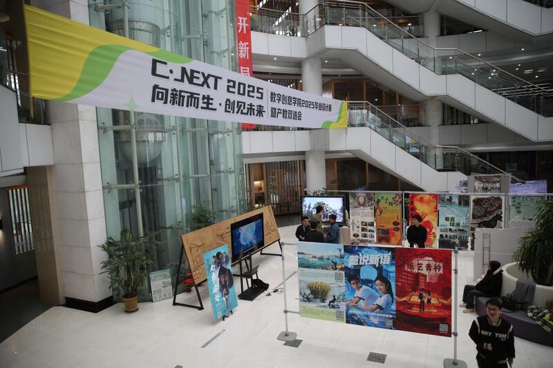 11月17日,数字创意学院2025毕业设计展暨产教双选会在校图书馆二楼展厅盛大开幕。本次展览以“向新而生·创见未来”为主题,涵盖数字媒体艺术、动漫制作技术、虚拟现实、视觉传达、环境艺术、影视动画等多个行业前沿动态,集中展示近300名应届毕业生的原创成果。同时,近30家合作企业单位应邀参加此次活动。