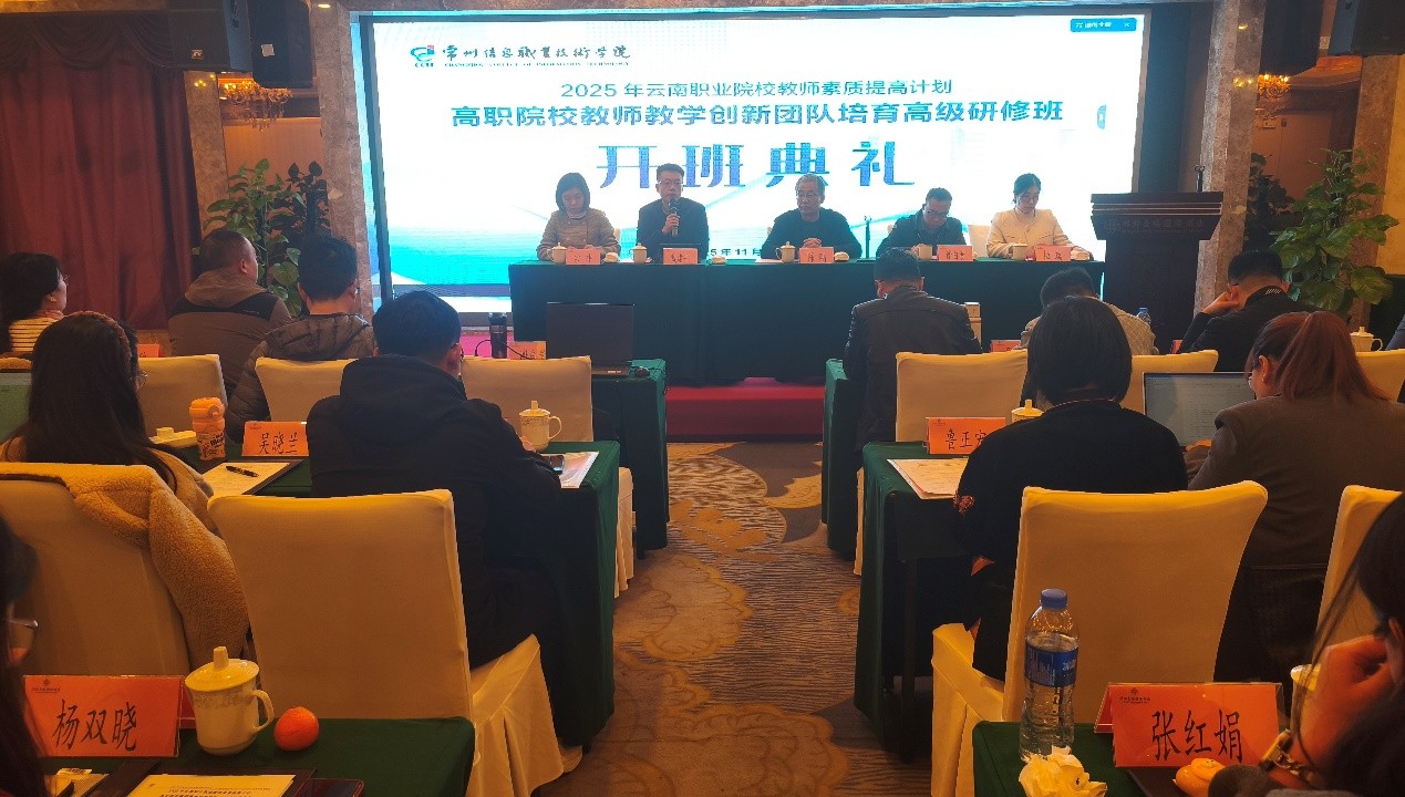 11月24日上午,云南省教育厅主办、常州信息职业技术学院承办的2025年云南职业院校教师素质提高计划高职院校教师教学创新团队培育高级研修班开班典礼在常州明都豪格国际酒店隆重举行。常州信息职业技术学院原党委委员、副校长陈刚,相关职能部门、二级学院负责人、培训班班主任以及云南各高职院校的参培教师参加了开班典礼。