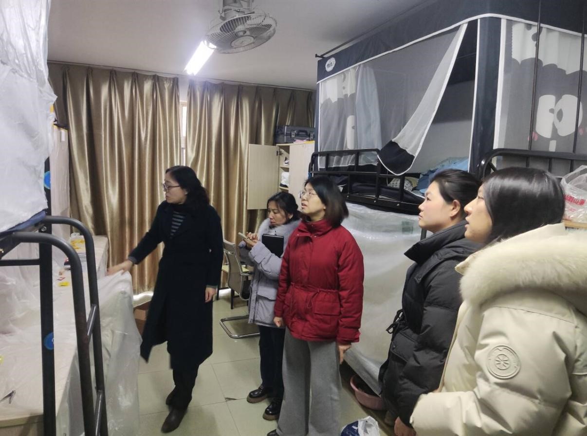 会后,严海霞带领学工办辅导员实地检查12号公寓待粉刷宿舍的整体进度,并走访学生宿舍,仔细查看物品收纳摆放、门窗完好状况及消防器材配备情况,就宿舍物品规范收纳、安全隐患排查等工作提出具体指导意见。(文/徐元 摄/张信淋 吴旦 审/刘薇 沈彩丽 蒋艾)