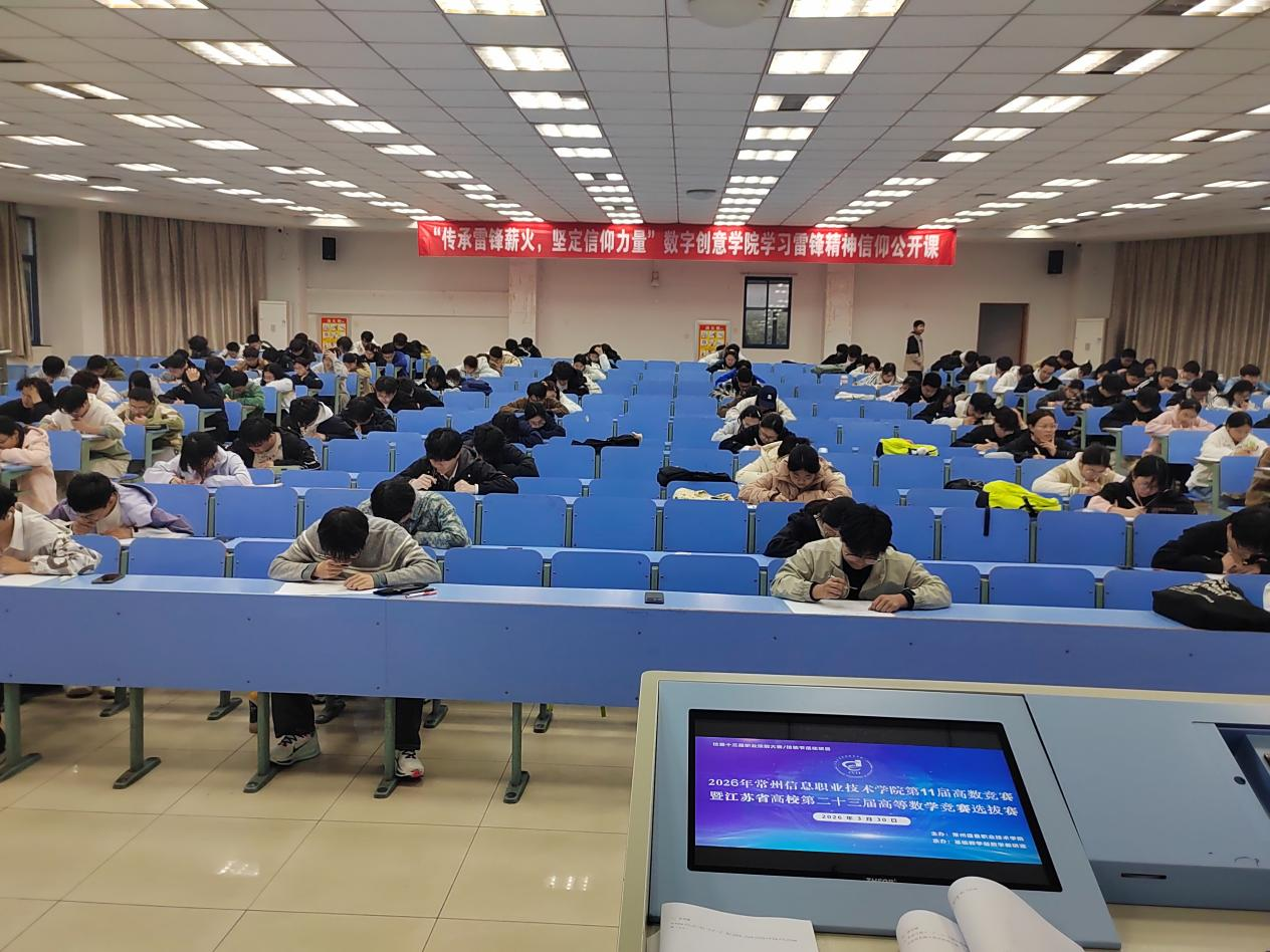 2026年3月30日晚,作为学校第十三届职业技能大赛重要赛项之一,常州信息职业技术学院第十一届高等数学竞赛暨江苏省高校第二十三届高等数学竞赛选拔赛顺利举行。本次竞赛由基础教学部数学教研室竞赛教练组组织,面向全校23级、24级、25级学生开放,共256名同学自愿踊跃报名参赛。