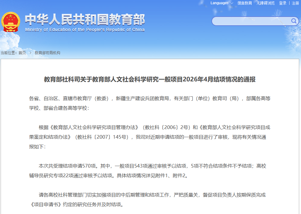 近日,教育部社会科学司发布《教育部人文社会科学研究一般项目2026年4月结项情况通报》,常州信息职业技术学院戴建平教授主持的教育部人文社会科学基金项目《工业互联网平台多边价值共创视角下制造企业供应链数字化转型研究》(22YJAZH012)顺利通过验收并结项。这是我院在数字经济、工业互联网与供应链管理领域取得的重要科研突破,进一步提升了学院服务地方产业数字化转型的学术影响力与社会服务能力。