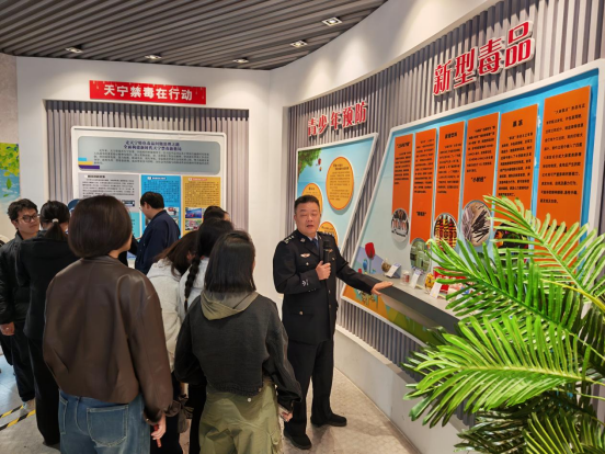 活动伊始,在常州市禁毒社会化工作办公室负责人金伟民警长的解说下,师生们参观了禁毒教育展厅。一幅幅触目惊心的图片、一件件真实案例的还原、以及毒品仿真模型的展示,让同学们深刻认识到毒品对个人身心健康、家庭幸福及社会稳定的毁灭性危害。金警长还重点剖析了新型毒品的伪装性与迷惑性,提醒大家警惕陌生环境中的诱惑,坚决不碰“第一口”。