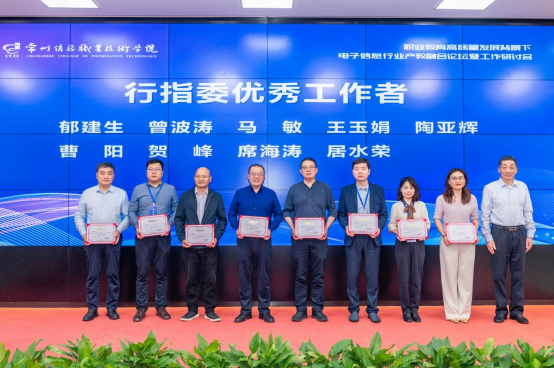 5月11日,我校召开职业教育高质量发展背景下电子信息行业产教融合论坛暨工作研讨会。江苏省委统战部二级巡视员、江苏省中华职业教育社秘书长倪南,省电子信息行指委副秘书长、省工信厅人事处二级调研员庄栋岭,常州市科教城管委会副主任庄三舵,省电子信息行指委副主任兼秘书长、南京信息职业技术学院校长田敏,江苏省中华职业教育社主任袁旭,省电子信息行指委副主任、常州工业职业技术学院党委书记席海涛,省电子信息行指委副主任、中通服咨询设计研究院有限公司副总经理郁建生,江苏电子信息职业学院校长张有东,江苏信息职业技术学院校长张瑜,扬州高等职业技术学校校长赵杰,苏州市电子信息技师学院校长苏建良,我校党委书记成建华,党委副书记、校长徐建俊等出席会议。省电子信息行指委代表,行业企业代表,电子与信息类职业院校负责人、骨干教师等100余名嘉宾参加会议。